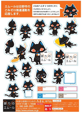エムールのキャラクターである「レムちゃん」が描かれたシールに、「エムールは日野市のごみゼロ推進運動を応援します」というメッセージを添え、出前授業などに参加した子どもたちへ配布したのです。